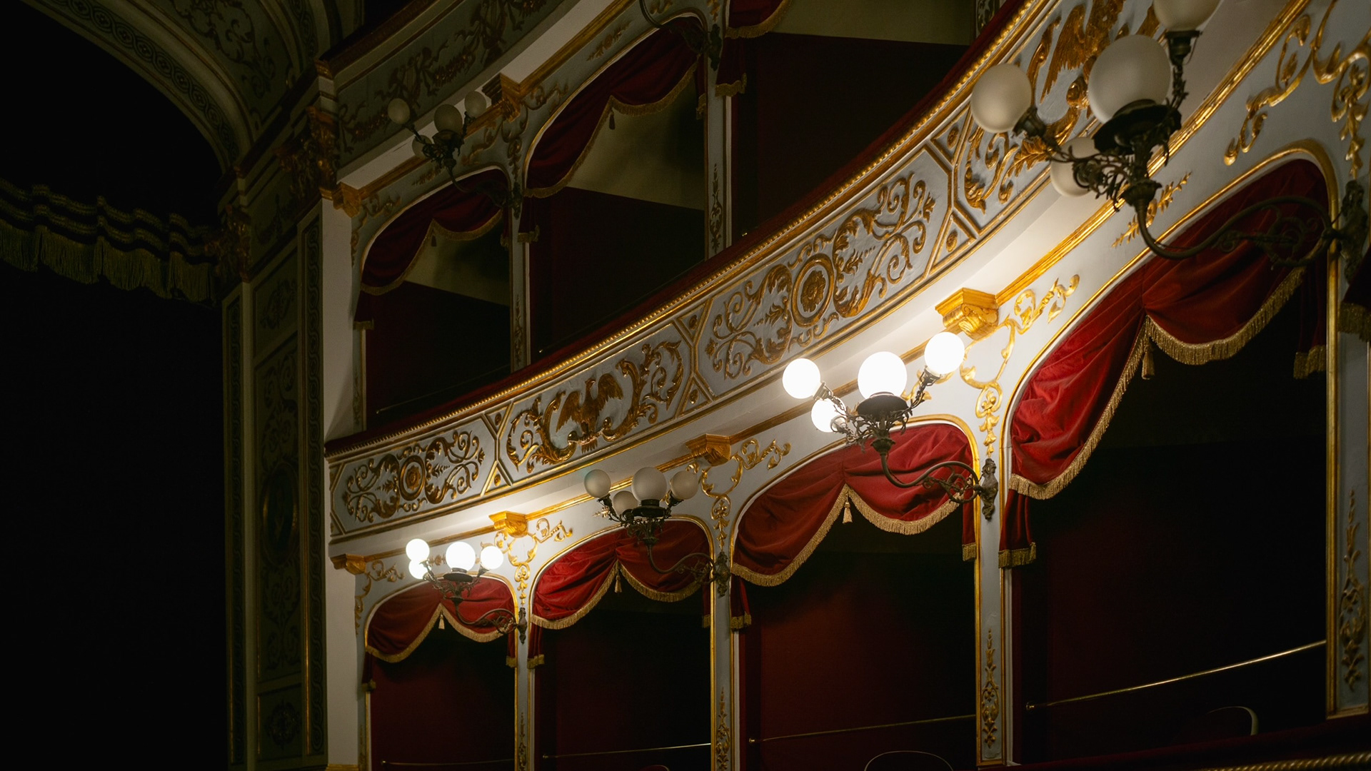 Auf der Piazza Teatro befindet sich das prächtige Theater Garibaldi. Seine Eleganz verdankt es der einzigartigen honigfarbenen Weisse des Hybläischen Steins. Im Inneren können wir das Gewölbe bewundern, das sich über den hufeisenförmigen Parkettplätzen erhebt, wo sich eine wunderbare Darstellung der tanzenden Musen des Malers Gregorio Scalia befindet. Foto Nicolas Eyer