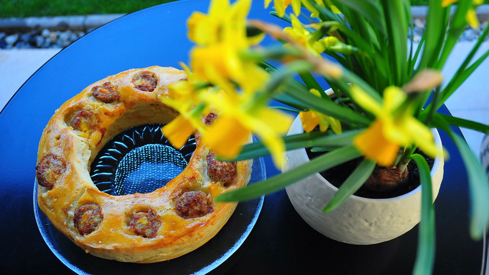 Ein Brotteig, angereichert mit frischer Salsiccia, Olivenöl, schwarzem Pfeffer und geriebenem Caciocavallo wurde in den Backofen geschoben. Das Resultat lässt sich sehen. Foto Nicolas Eyer