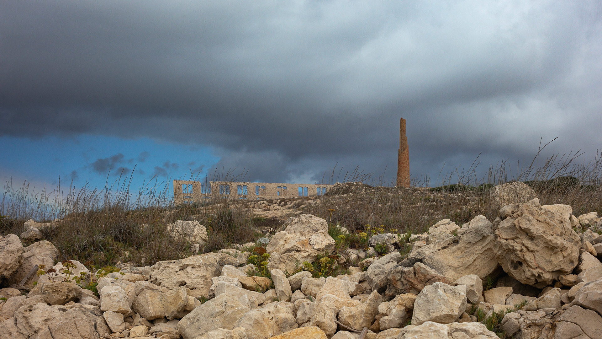 Fornacce Penna. Das unter ethno-anthropologischen Schutzbeschränkungen stehende Gebäude ist ein wichtiges Zeugnis der sizilianischen Industrie-Entwicklung im 20. Jahrhundert. Diese Aufnahme ist vom Oktober 2021. Seither mussten mehrere Einstürze registriert werden und die Zukunft dieses Gebäudes ist ungewiss.