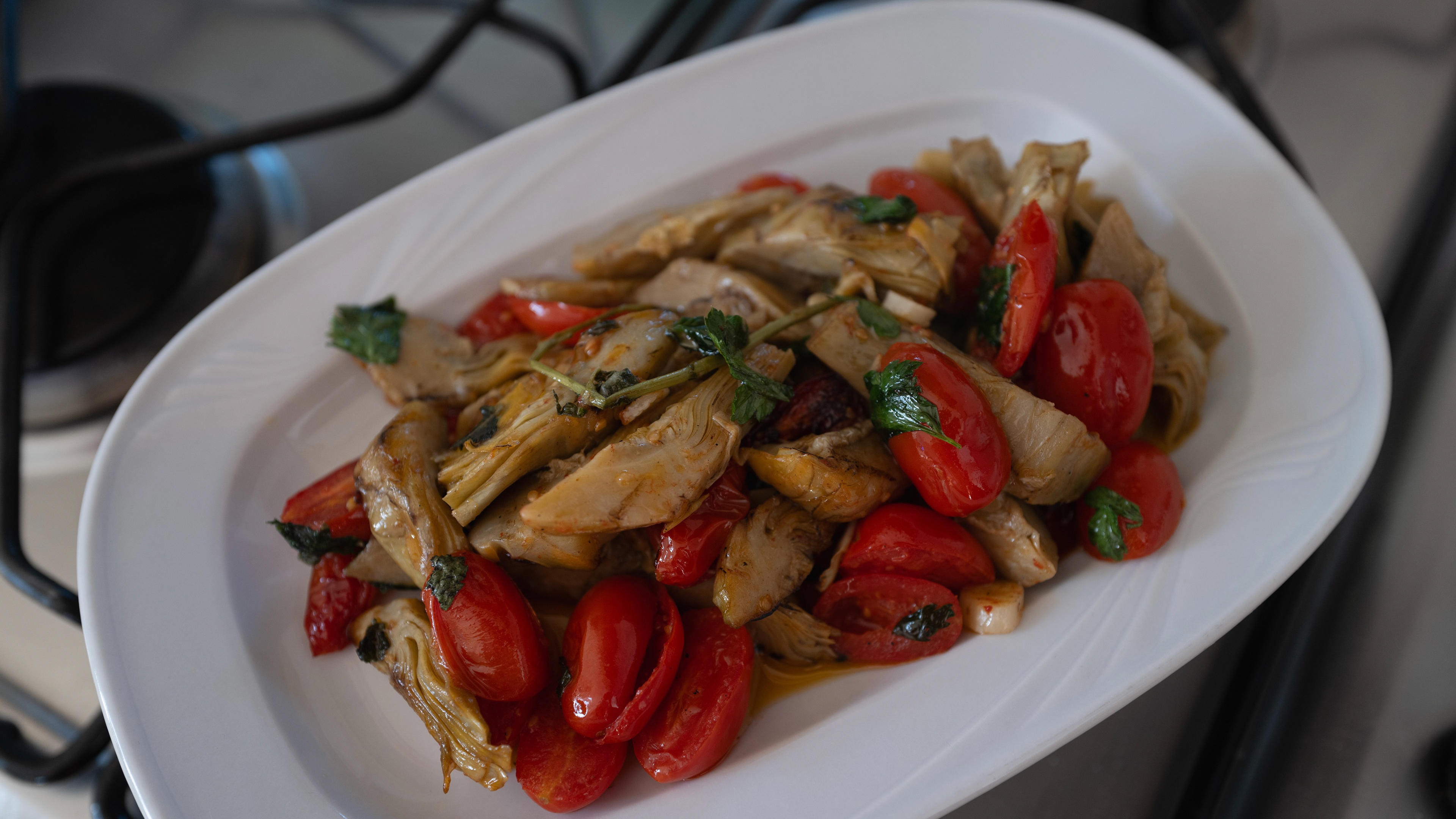 Primavera. Carciofi e Pomodorini. Gekocht in der Villa Casa Giorgio. Foto Nicolas Eyer