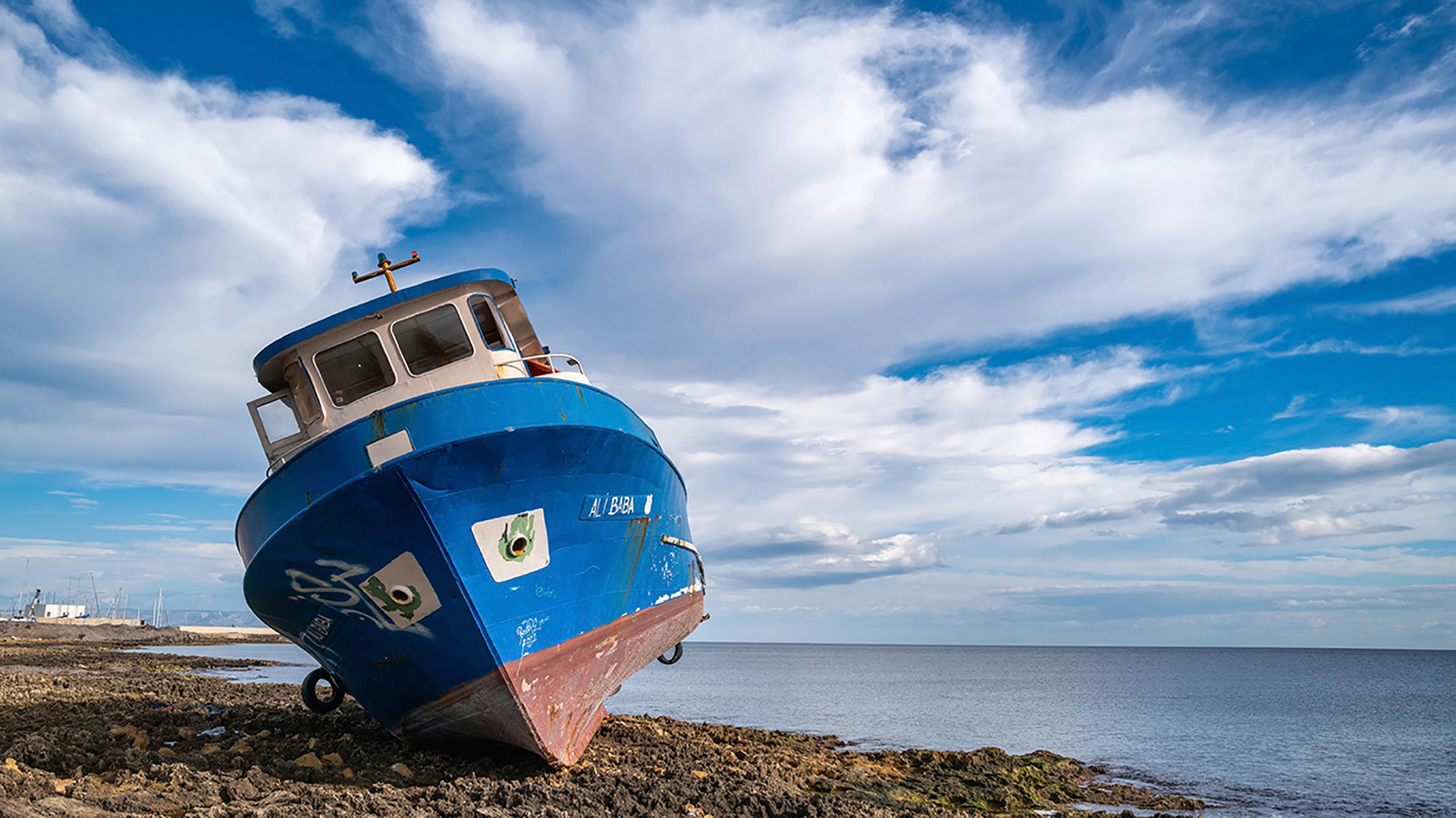 Schiff der Hoffnung. Im Mai 22022 liegt die "Ali Baba" etwas ausserhalb von Marzamemi auf dem Küstenfels. Foto Nicolas Eyer