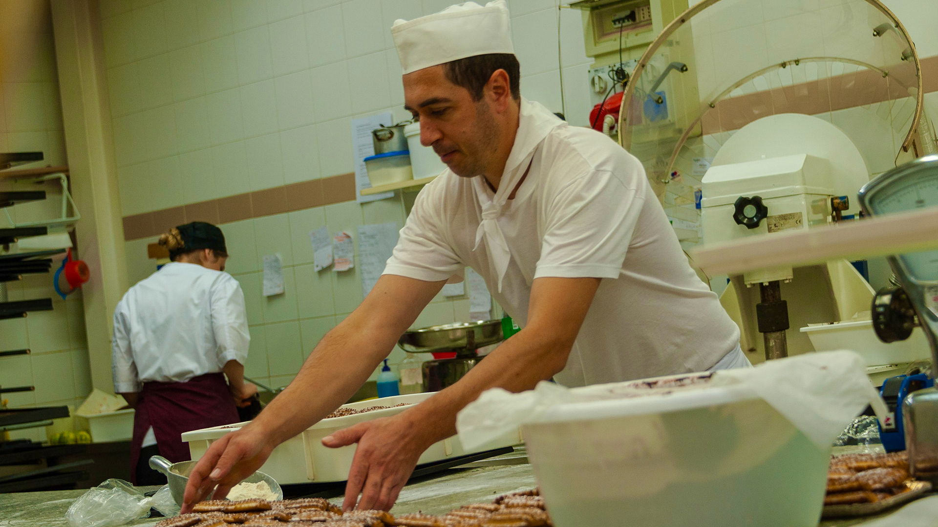 In der „Antica Dolceria Bonajuto“ waren die Zuckerbäcker gerade an der Arbeit. Ein Fenster stand ein wenig offen und beim Vorbeigehen erhaschte ich bei einem Blick in die Backstube, wie emsig hier gearbeitet wurde. Also klopfte ich an und fragte den leicht gestressten Chef, ob ich ein paar Fotos machen dürfe. Die grosse Begeisterung kam beim Capo zwar nicht auf, aber für ein paar Augenblicke liess er mich gewähren.