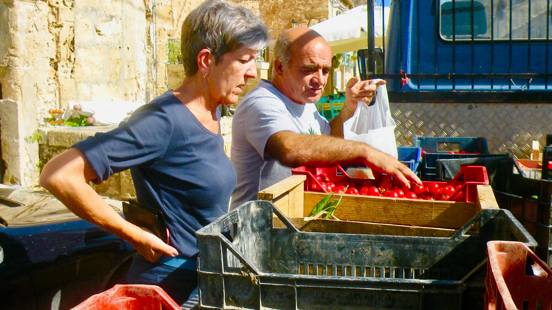 Madeleine kauft in Marzamemi direkt beim Produzenten aus Pachino ein. Foto Franz Eyer