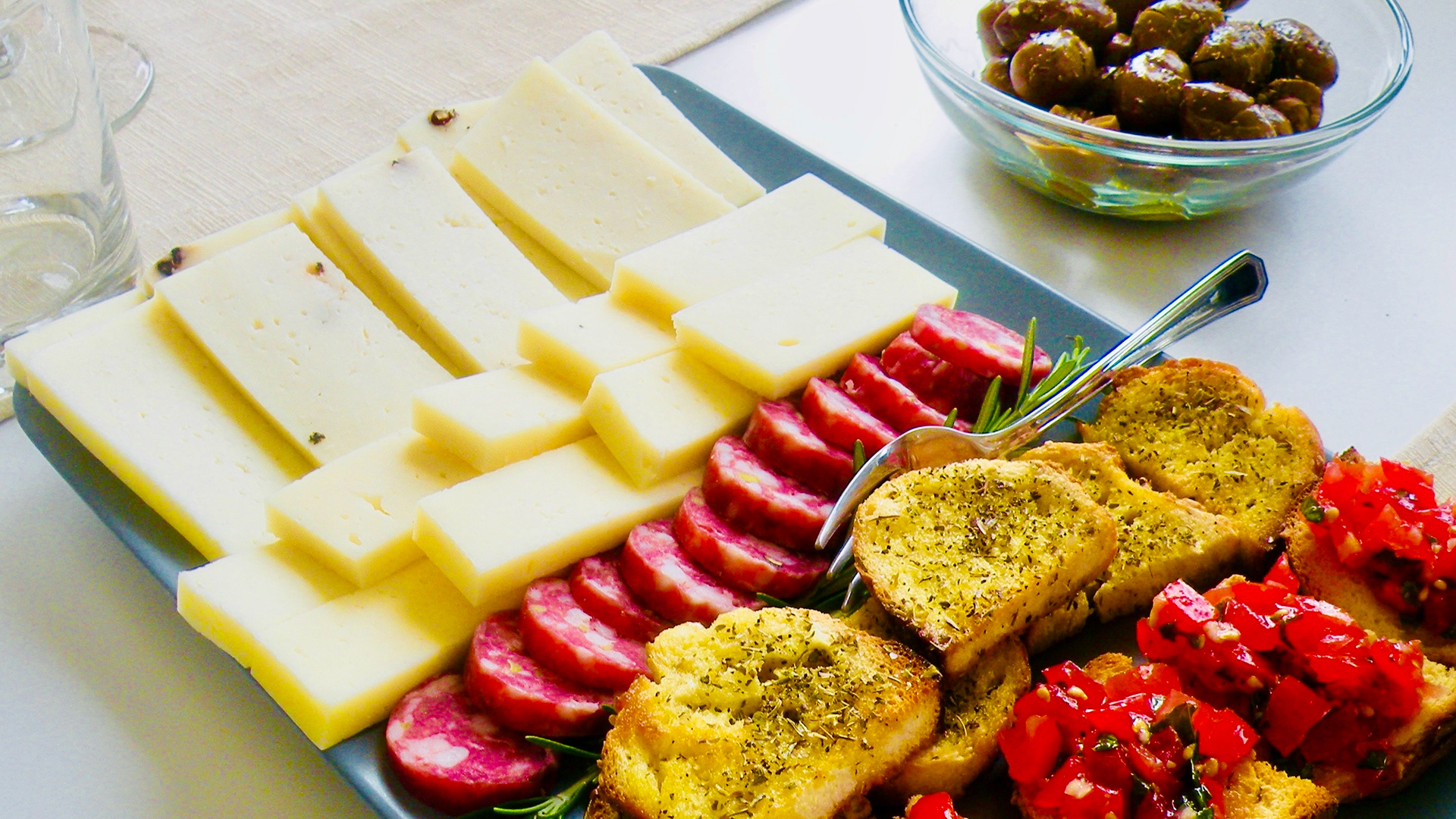 Antipasto, von einem fruchtigen Weissen Sizilianer begleitet